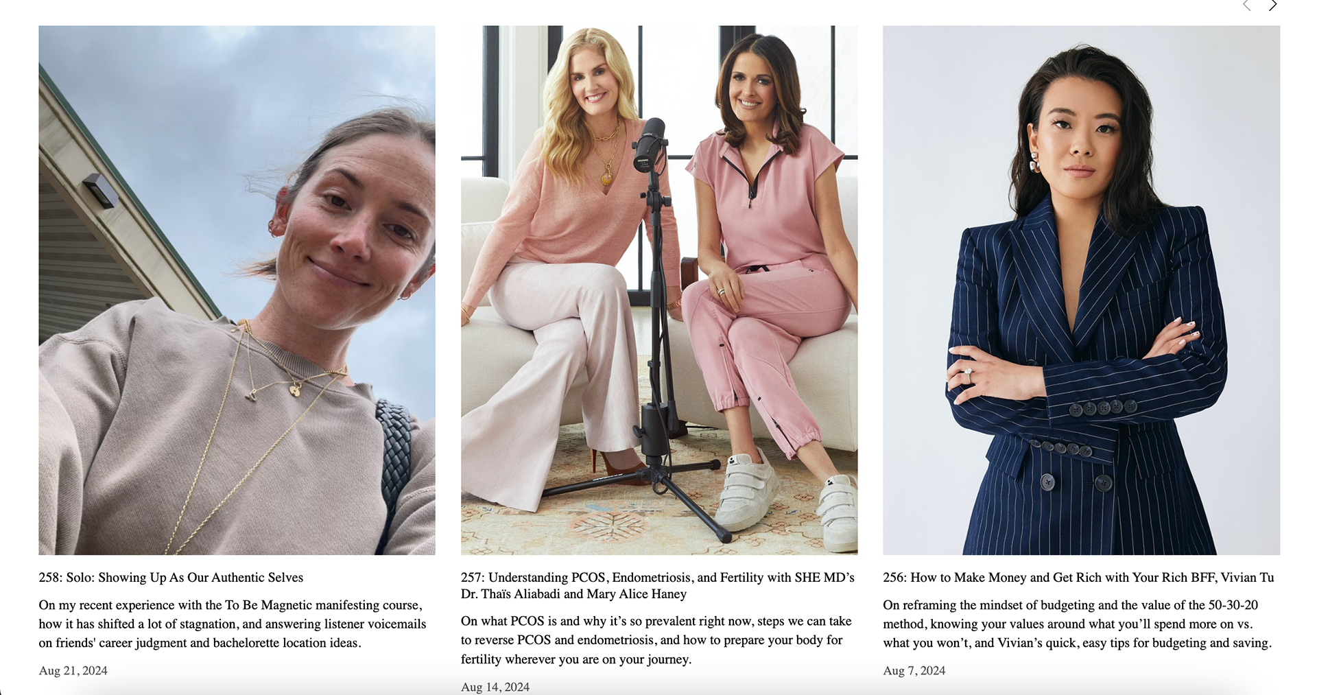 The client shared her primary goals for the redesign: highlight the podcast section, simplify information, remove unnecessary content, and modernize the overall look and feel. We discussed potential layout changes and aesthetic inspiration to better reflect her brand and engage her audience.