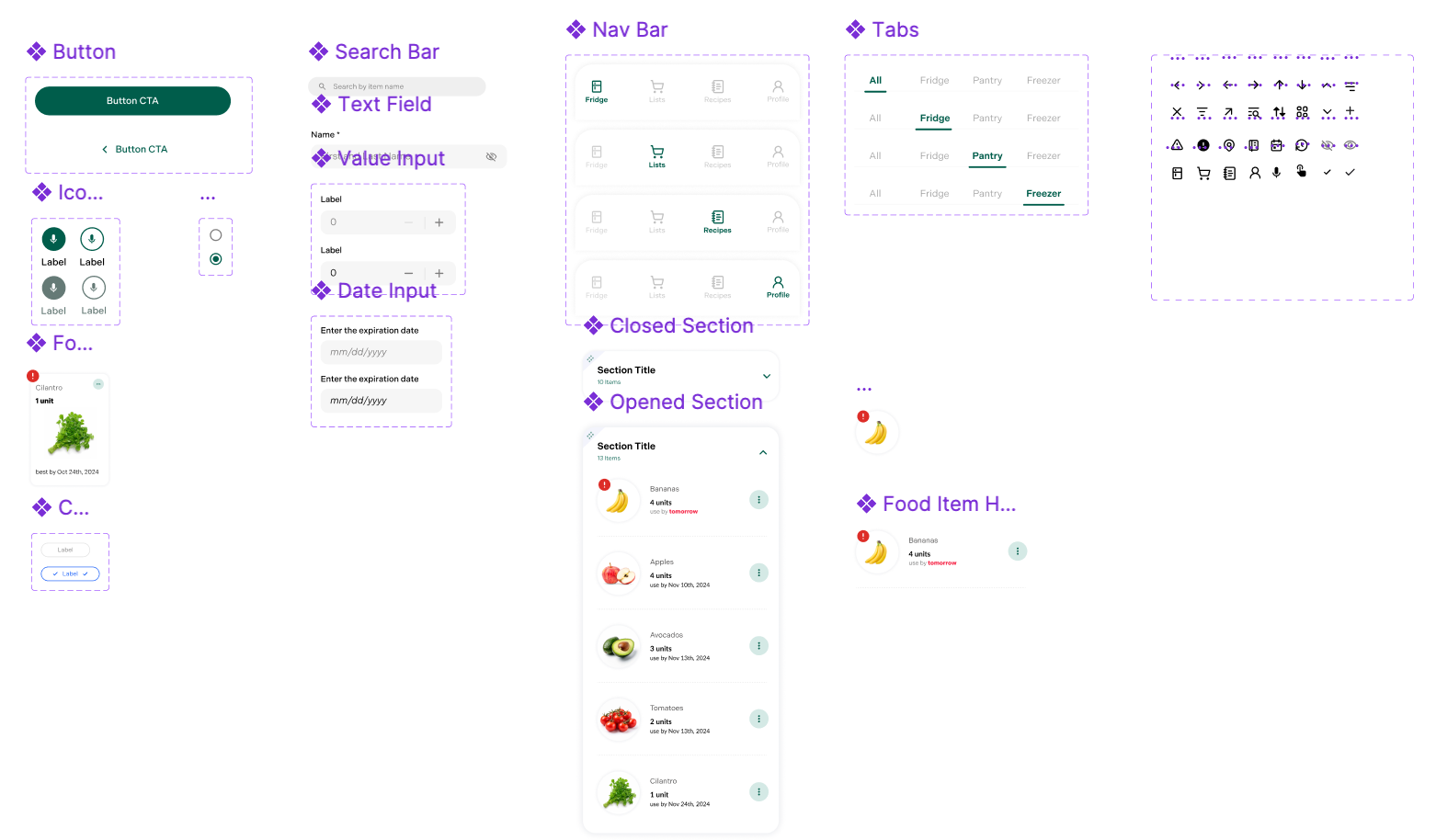 We worked on a low/mid fidelity design to understand the initial layout we wanted for our app with the onboarding process and the home page to add an item to your fridge manually.