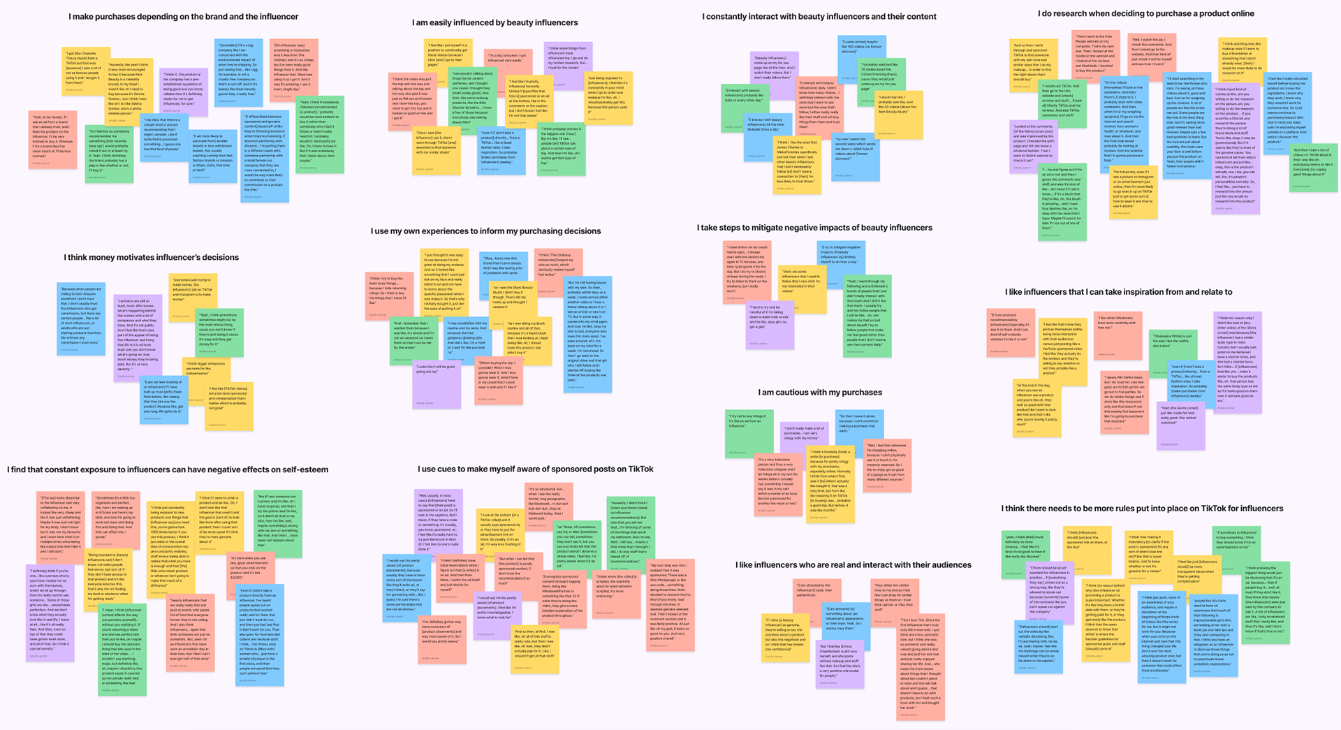 I covered my key findings in my journey map by including how Taylor thinks about her relationship with the influencer, does research to inform herself, considers if the post is sponsored, and thinks about the price of the product as all of this was mentioned in my thematic analysis.